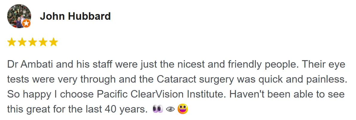 Pacific ClearVision Institute brings together experienced board-certified ophthalmologists, advanced diagnostic technology, and a patient-centered approach to deliver outstanding vision correction outcomes. Our surgeons have performed thousands of procedures and maintain a commitment to staying current with the latest advancements in refractive surgery techniques and technologies..